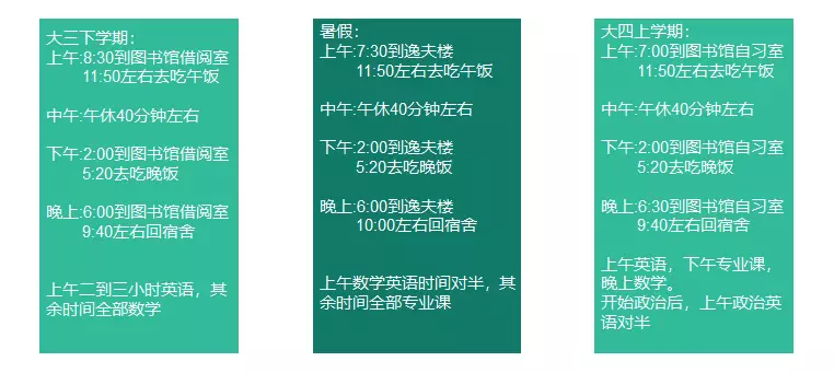 在精确到每一个小时的时间安排上,安祺也很有自己的打算,他分享了一张考研各个时期的时间安排表。