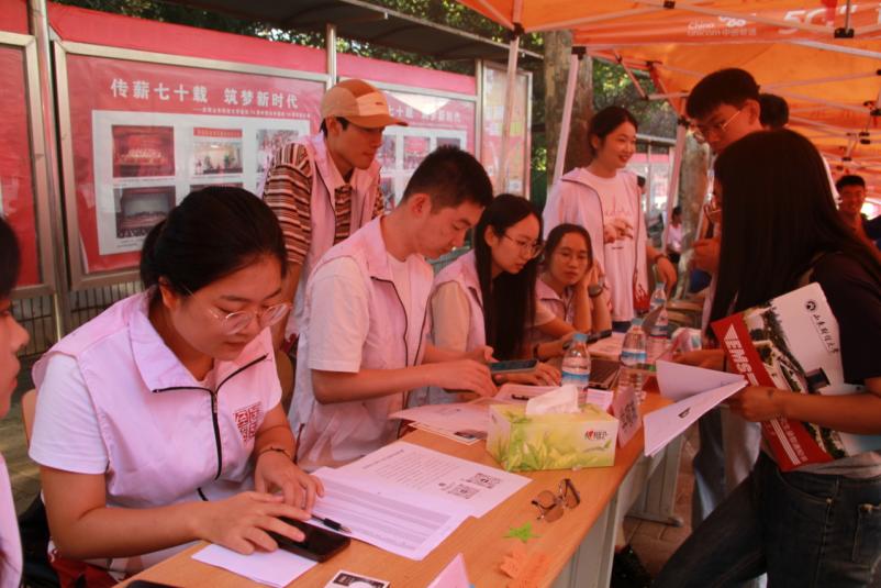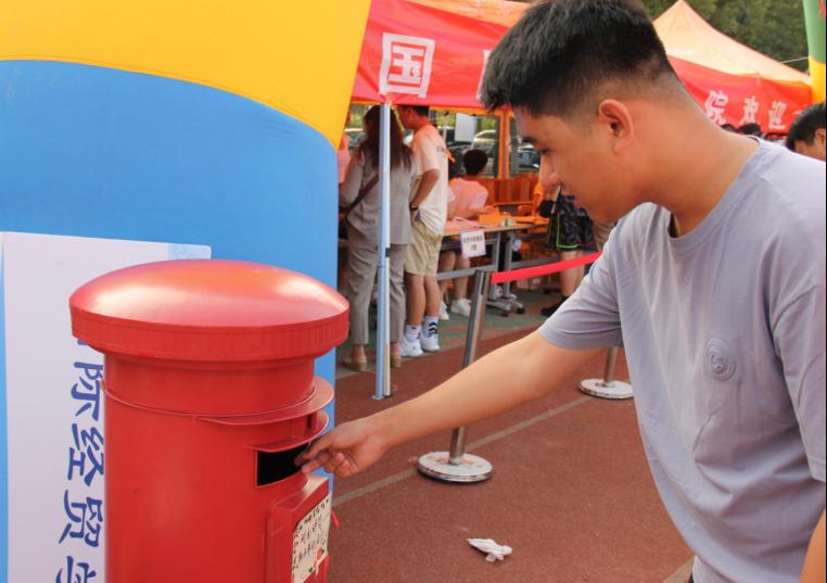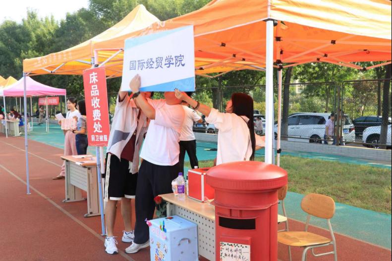 在迎新现场,陆续到达的新同学们受到学长学姐们的热情迎接,感受到国际经贸学院大家庭的温暖。迎新现场,虽然已是9月,但天气依旧炎热,而志愿者们不惧炎热的天气,有条不紊地帮助新生办理入学手续。他们有的在迎新点处统计基本信息、发放新生礼包,有的帮助新生将行李运往宿舍,用心周到的服务让新同学们倍感亲切。国际经贸学院特意为新生准备了“时光邮筒”“心愿箱”,引导新同学在迎新现场写下自己的美好心愿。另外,迎新点附近的展板则为新生们详细地介绍了学院概况、学科建设、学团工作、毕业生去向等内容,让他们对国际经贸学院和所学专业有着进一步了解。此外,国际经贸学院还为新生精心设计了T恤、卡套、贴纸等文创礼物,让新生切身感受到国际经贸学院的关爱和文化风采。