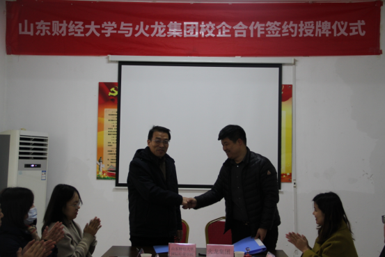 为进一步加强校企交流与合作,实现资源共享、发展共赢、协同育人的宗旨。1月10日,国际经贸学院与山东火龙商贸有限公司举行了大学生实习实践基地签约揭牌仪式。国际经贸学院书记崔东峰、副书记郝秀峰、副院长刘伟全、跨境电子商务系主任刘宁、就业办主任李瑞雪,学工办主任李亚莉以及山东火龙商贸有限公司总经理田广俊、总经理助理聂圣、招商总监丁景、人力资源总监王玉玲、火龙集团总经理助理王丛丛等相关工作负责人,部分学生代表等共同参加了本次活动,并就大学生的就业创业、实习实践和人才培养等方面开展了深入座谈,积极探索建设校企协同育人新模式。