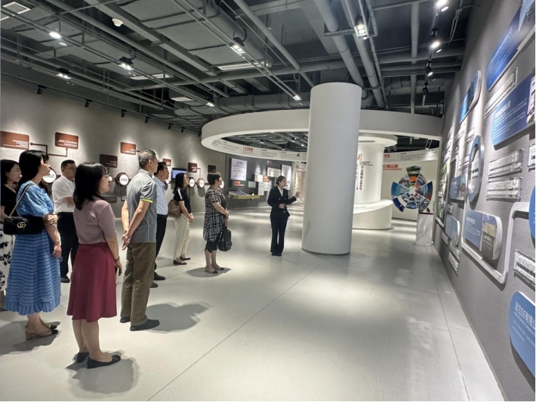 在玫德集团董事局副主席常城等人陪同下,国际经贸学院师生参观了集团的展厅、科技园区和智能工厂,并进行了座谈。