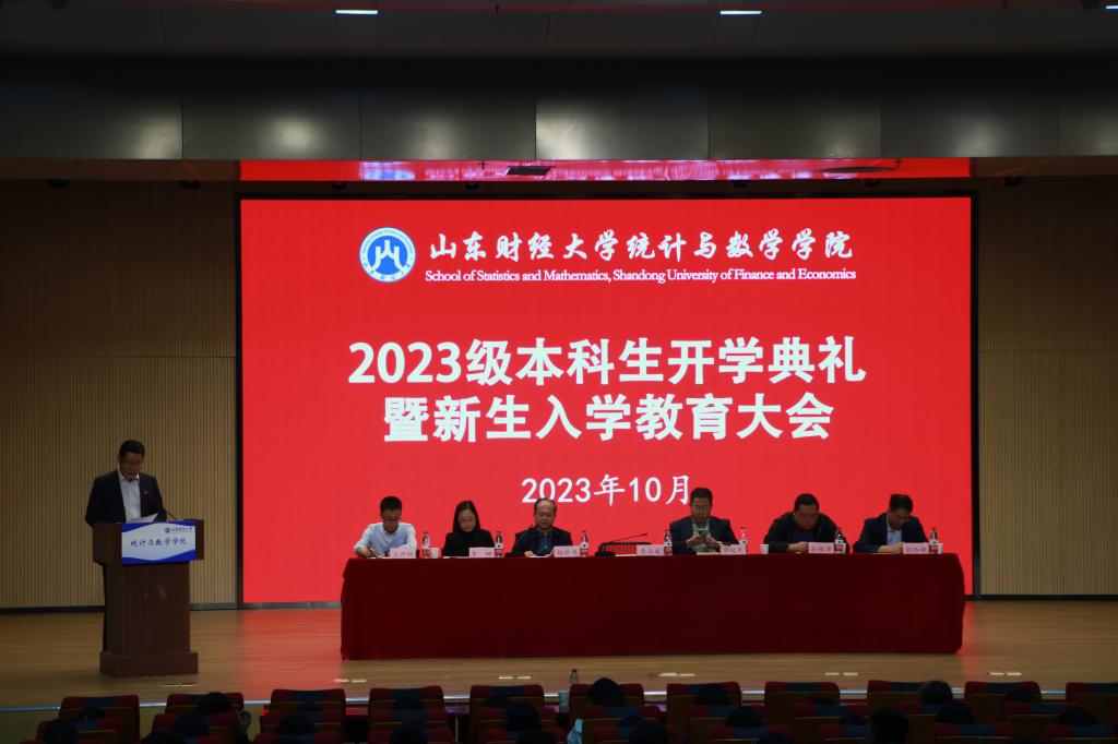 10月18日下午6:30,统计与数学学院于我校圣井校区大学生活动中心报告厅举办2023级新生开学典礼。学院党委书记李玉成,副书记、院长安起光,党委副书记杨德嵋、孙栋梁,副院长李娜、郭洪峰、王开科、2023级新生辅导员及2023级全体新生参加。典礼由杨德嵋主持。